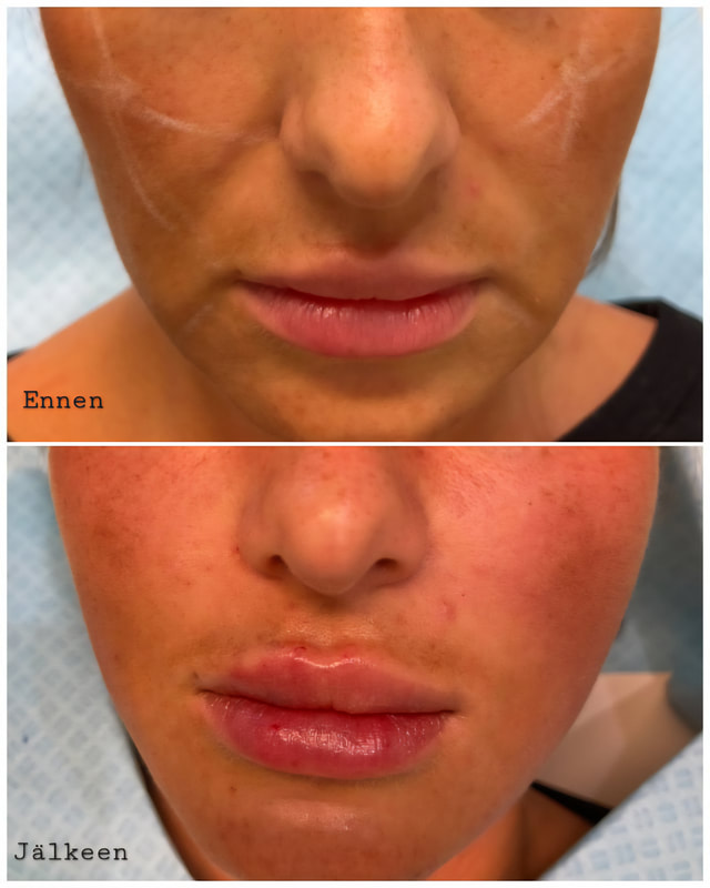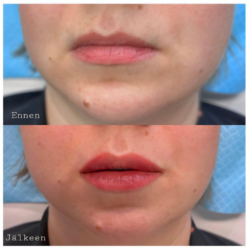 - Vältä heti huulten täyteainehoidon jälkeen kuumia sekä tulisia ruokia ja juomia (n. 6-12 tuntia). Huulet voivat olla puuduksissa vielä hetken täyteainehoidon jälkeen, joten varothan ettet puraise huulia ruokaillessasi.